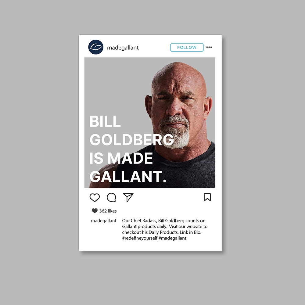 From the custom “G” icon inspired by co-founder Bill Goldberg's tribal tattoo markings and natural forms to a color system drawn from Goldberg’s Tulsa roots, every piece of Gallant carries intention. The result is a brand that doesn’t just look the part, it embodies it. It speaks clearly, moves with discipline, and motivates without selling. This is how you turn wellness into a movement.